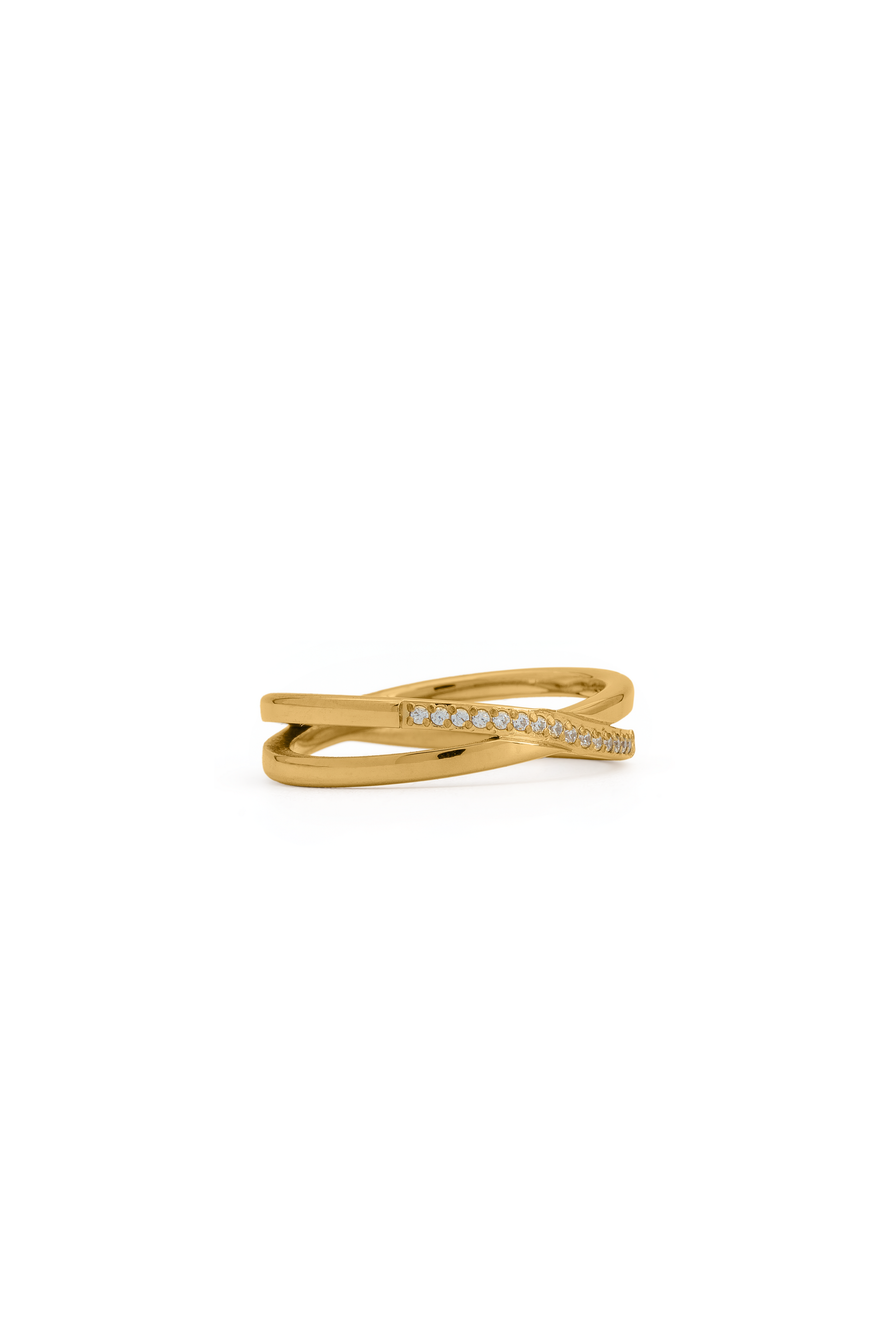 Sleek meets statement. The Criss Cross Ring in demi-fine craftsmanship features intersecting 18k gold-coated bands, blending everyday ease with elevated design. Light, durable, and made to layer — it’s modern luxury without compromise. Effortless to wear. Impossible to ignore. A refined essential, designed to move with you.