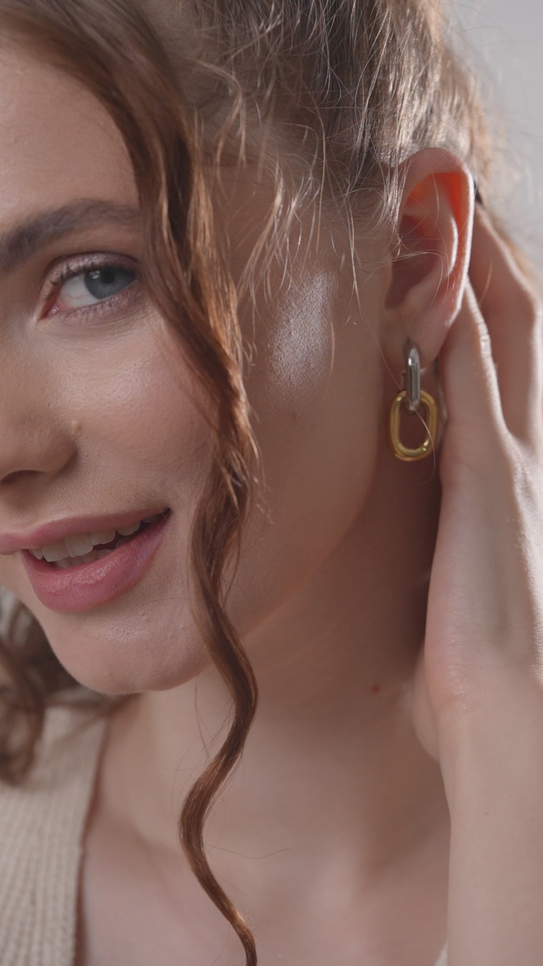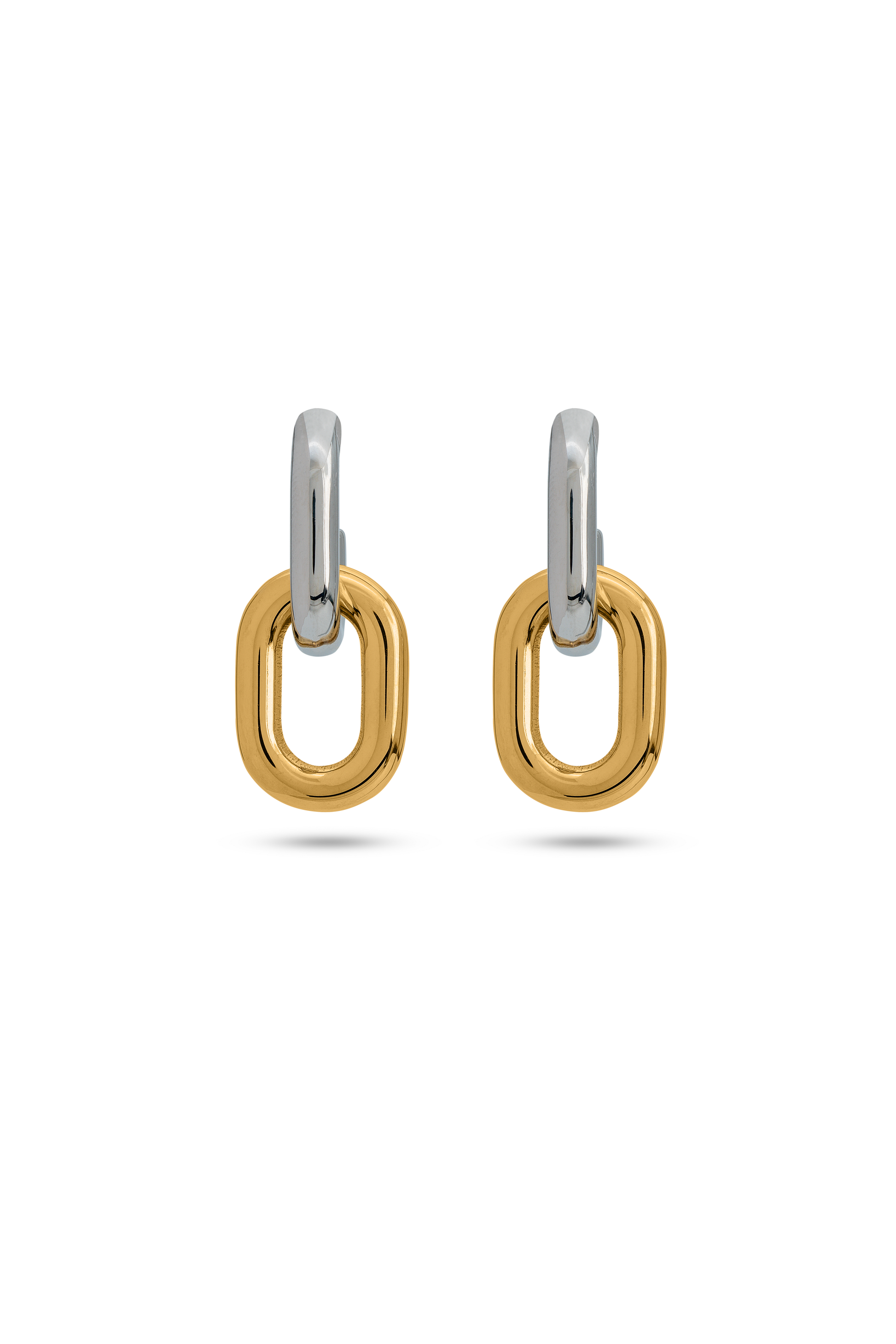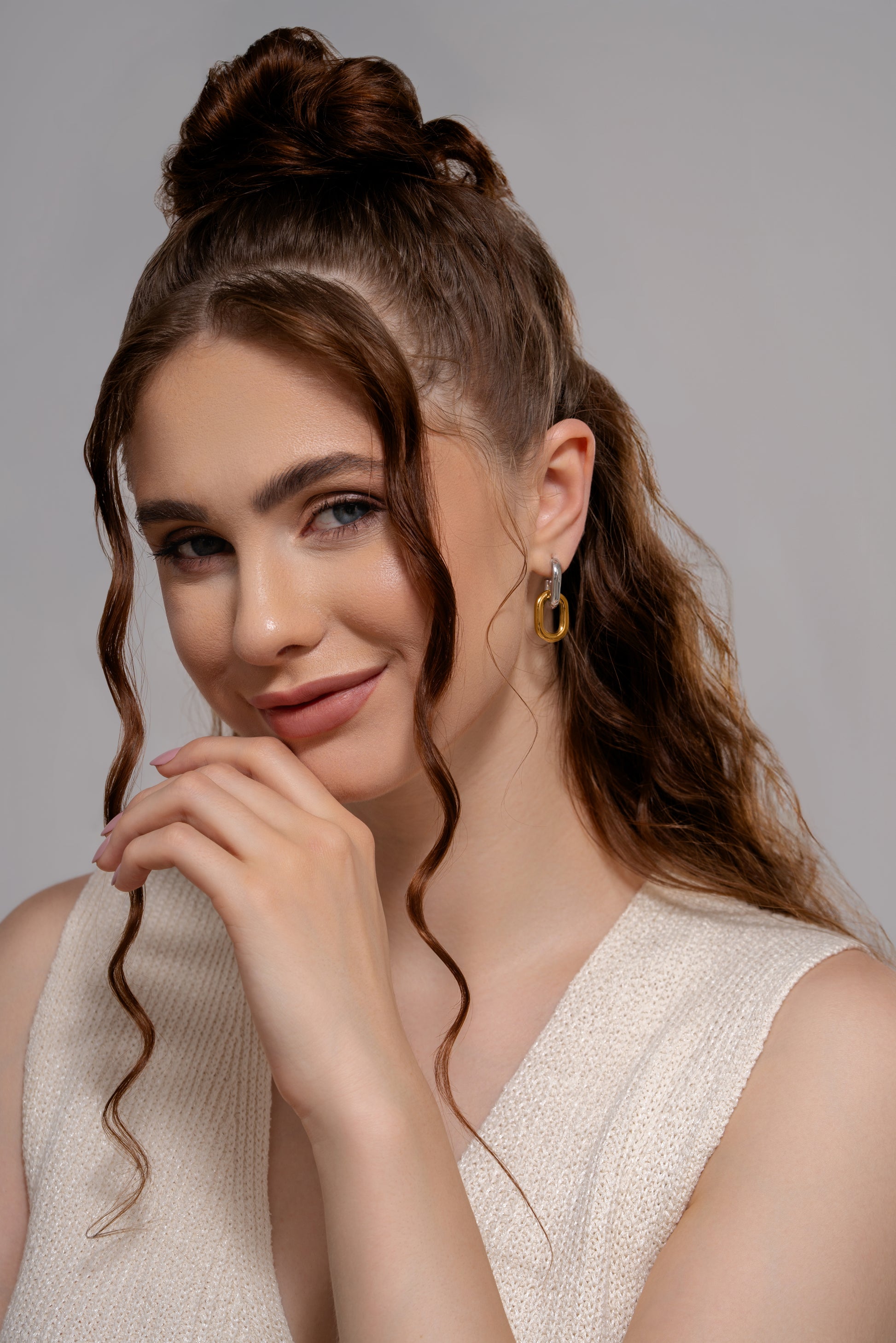 Harmony Links earrings expertly merge contemporary design with classic appeal. Featuring a polished silver hoop seamlessly joined to a lustrous gold oval link, they create a refined contrast of metals. Their clean, symmetrical form embodies balance and sophistication, making them ideal for enhancing both daily wear and elegant evening looks. Lightweight and adaptable, these earrings symbolize unity through contrast, offering a distinguished addition to any curated jewelry collection.